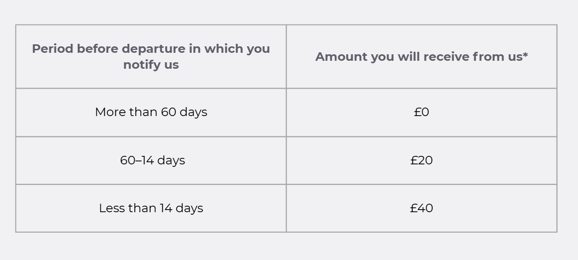 In addition to a full refund of all monies paid by you, we will pay you compensation as detailed below, in the following circumstances: