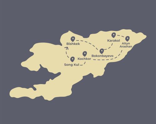 The trip starts and ends in Bishkek, home to Manas International Airport.